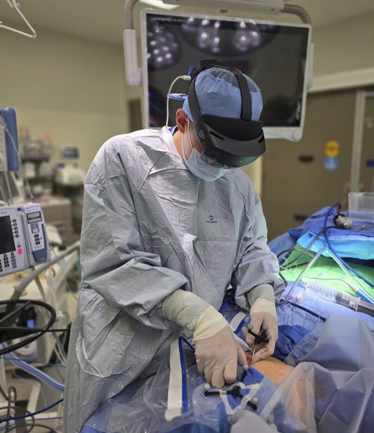 With FDA-cleared IntraOpVSP, patient data translates from two-dimensional TV screens and monitors into three-dimensional extended reality to provide a heads-up reference during surgery.